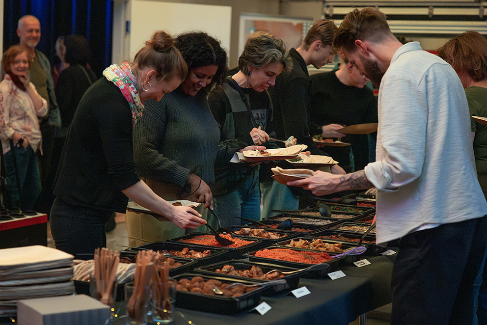 Etter underholdnigen var det god tid til mingling, mat og prat både i og utenfor “black boxen” i våre produksjonslokaler på Rommen. Produksjonslokalene til DKS Akershus inneholder et stort lager med utstyr som utøvere bruker i sine produksjoner ute på skolene. Vi har også et stort lydtett rom/”black box” som utøvere har preprod/siste finpuss på sine produksjoner før de skal ut på turné. Denne kvelden ble lokalene pyntet til fest. Vi gleder oss til flere samlinger!