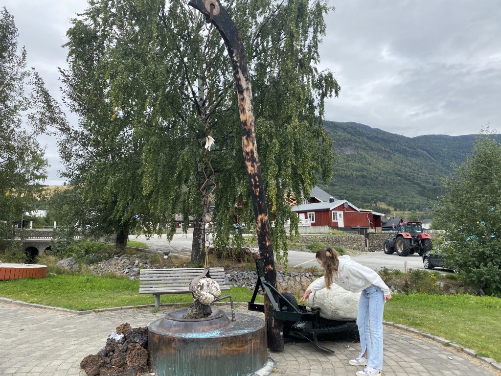 Samtalen om og ved skulpturen var ganske så fin, og Sienna viste seg å ha mange spennende refleksjoner rundt skulpturen. Både angående materialvalg, funksjonen til de ulike bestanddelene skulpturen besto av, patina og historikk. Samtalen var riktig hyggelig – heldigvis – for det som skjedde etterpå var litt mindre hyggelig.